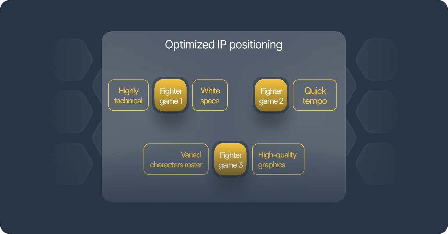 Align market opportunities, IP competitive strengths and audiences motivations to determine optimal positioning for your game.
